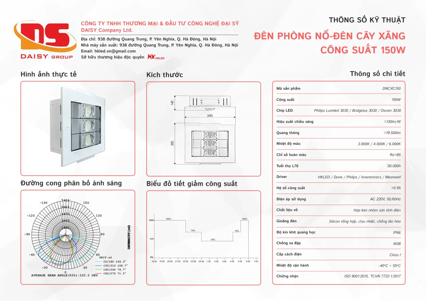 • Hiệu suất chiếu sáng: 130lm/W