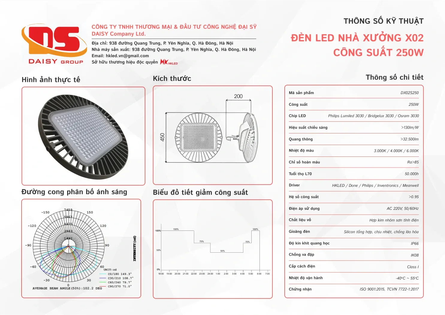 • Hiệu suất chiếu sáng: 130lm/W