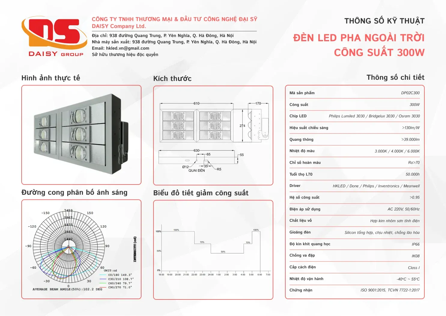 • Nhiệt độ màu: 3.000K / 4.000K / 6.000K